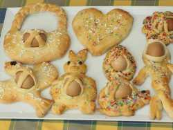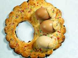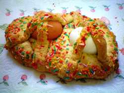 Alcune immagini della scarcella, uno dei pochi dolci tipici di Bari: decorato di solito con le uova sode, è un prodotto tipico del periodo pasquale
