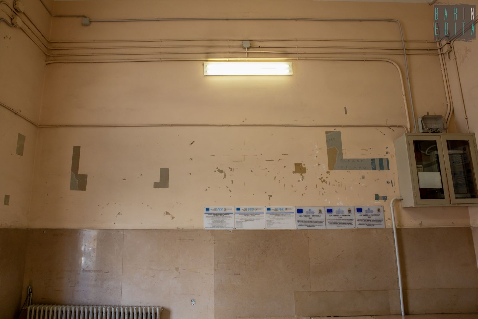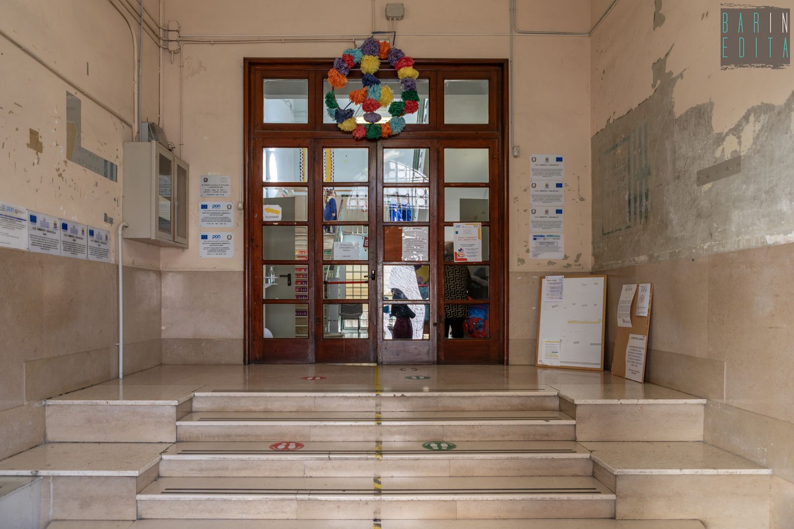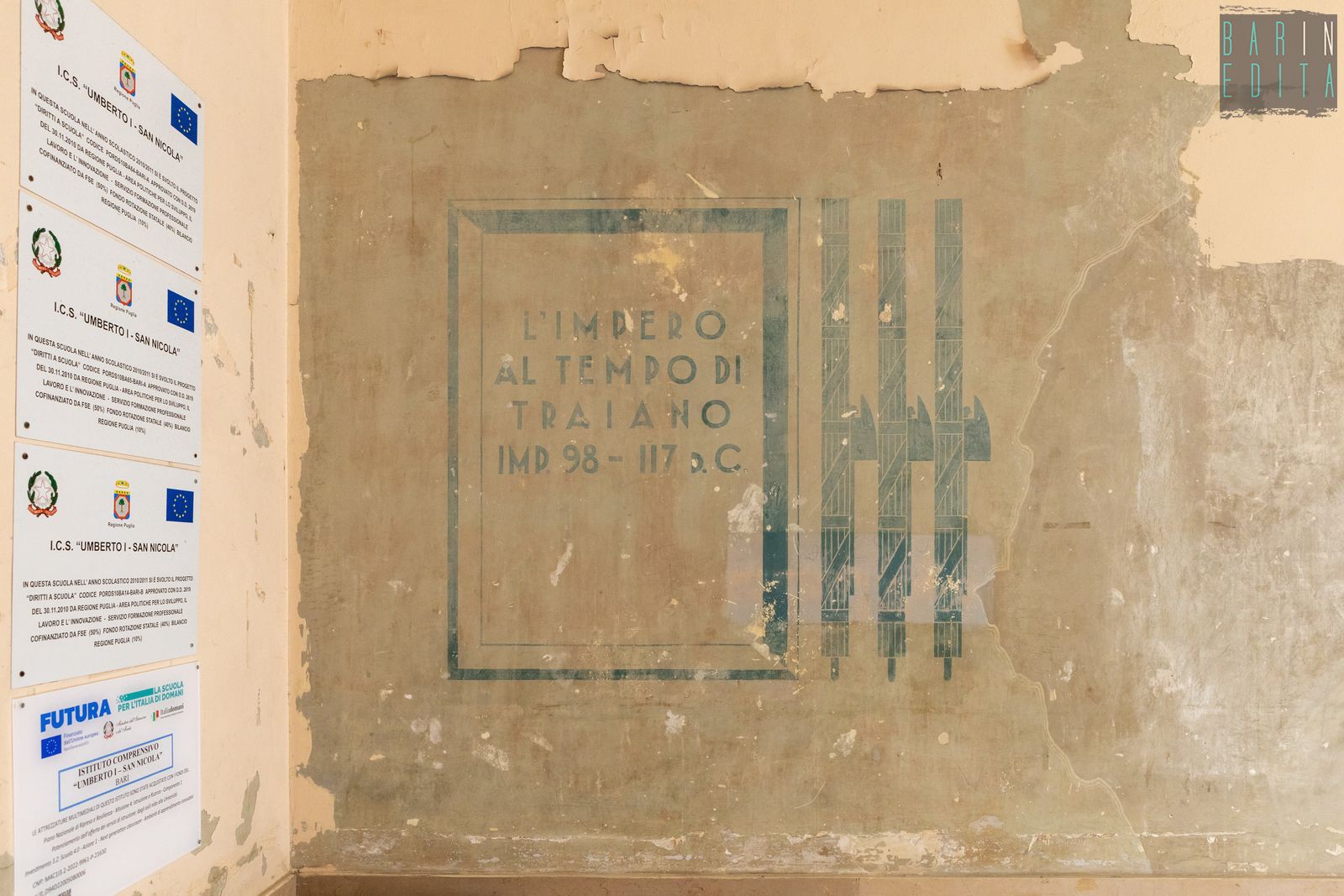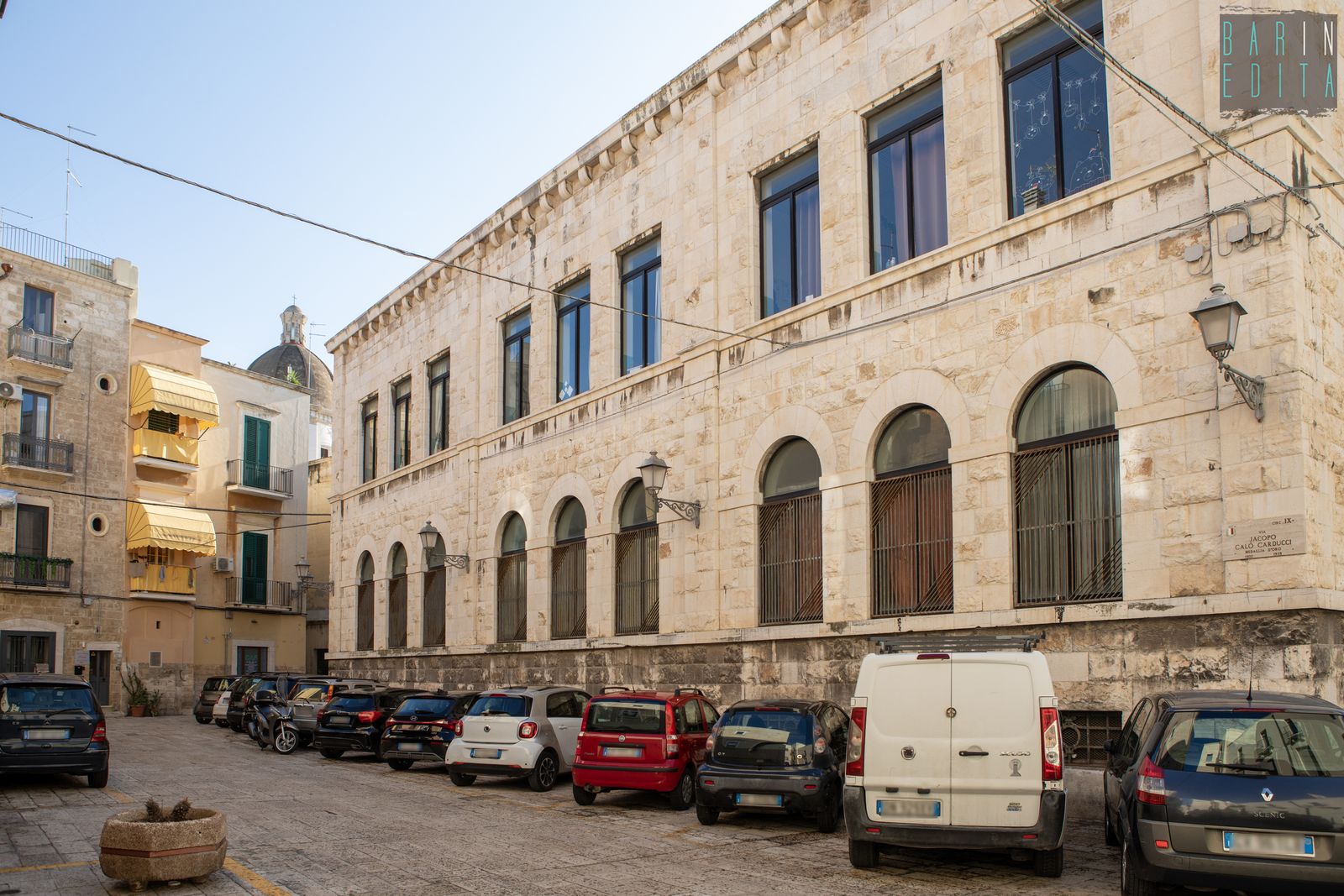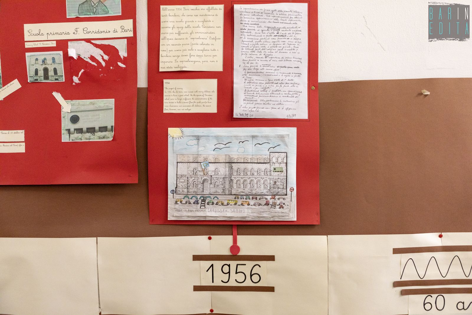 Un vero e proprio simbolo di Bari Vecchia, da decenni punto di riferimento per un’intera comunità. È la descrizione della scuola Filippo Corridoni, istituto del 1939 che ha visto passare tra le sue aule migliaia di bambini residenti nel centro storico. L’edificio sorge in largo San Sabino, alle spalle dell’omonima Cattedrale e conserva ancora oggi, oltre all’austera facciata e al torrino ad archi, anche rari dipinti murali di epoca fascista e un ricco archivio storico.