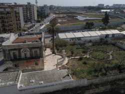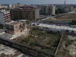 Si trova in mezzo al nulla, tra l’area dell’ex Fibronit in via di bonifica e un cantiere bloccato per problemi di inquinamento. Parliamo dell’elegante Villa De Sario, edificio risalente alla metà dell’Ottocento che si erge all’inizio di via Caldarola, nel quartiere Japigia di Bari. Seppur vincolato, il fabbricato è disabitato da tempo e nasconde tra le sue mura bizzarrie architettoniche e un giardino “segreto” visibile solo dall’alto (foto di Ilaria Palumbo e Francesco Cocco-fkdrone)