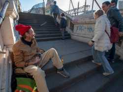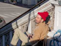 Tra i tanti clochard che chiedono l’elemosina a Bari ce n’è uno molto particolare: un signore che la vita per strada l’ha scelta. Si chiama Marco, ha 47 anni ed è presente ogni giorno sul cavalcavia pedonale che congiunge l’extramurale Capruzzi al centro cittadino. E' soprannominato "Marco buongiorno" per via del suo porsi sempre in maniera allegra e cordialenei confronti dei passanti (foto di Antonio Caradonna)