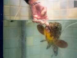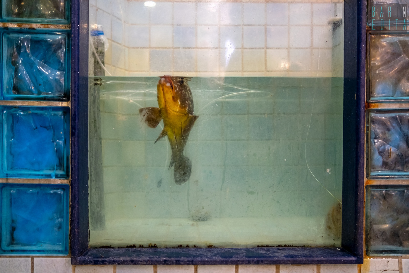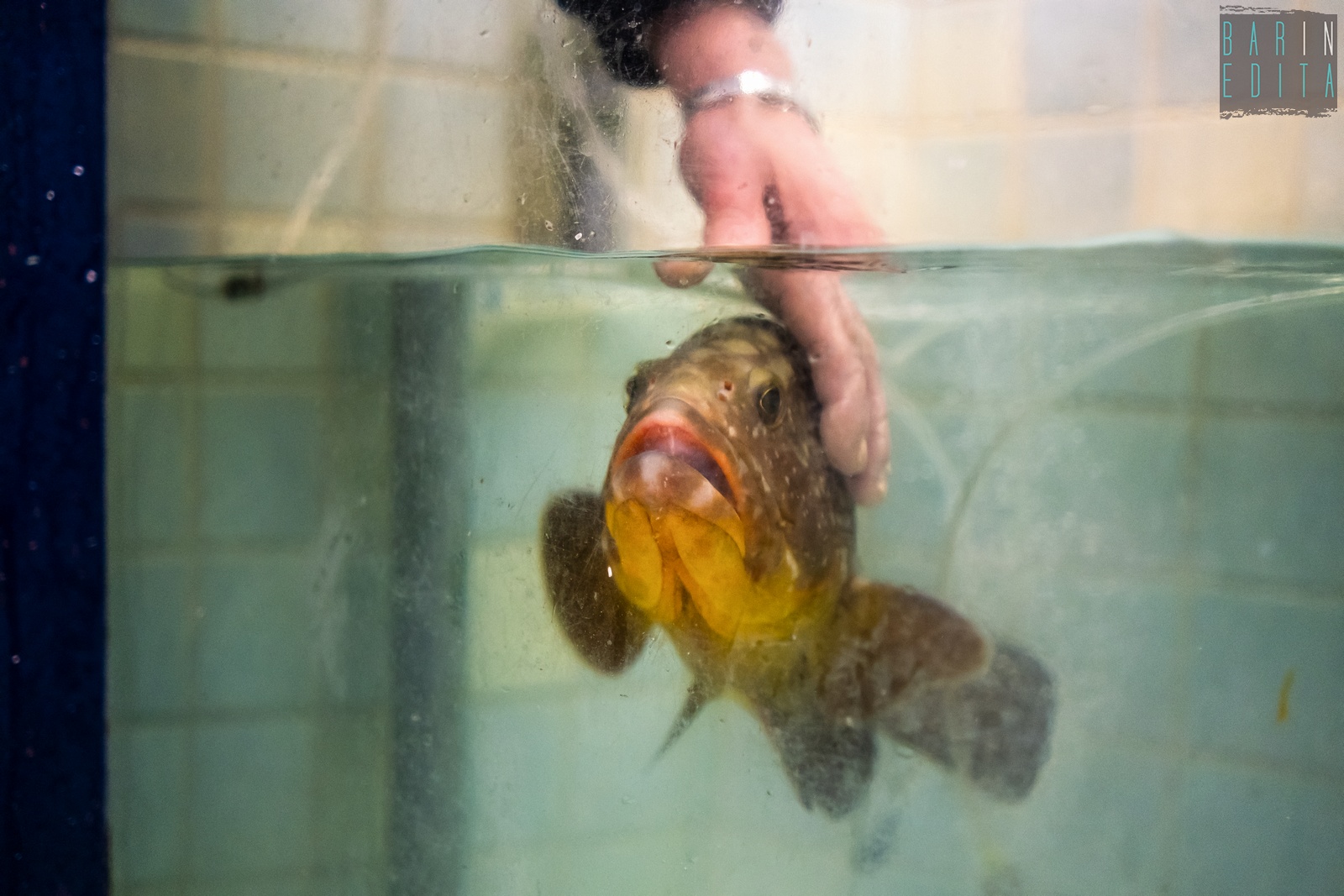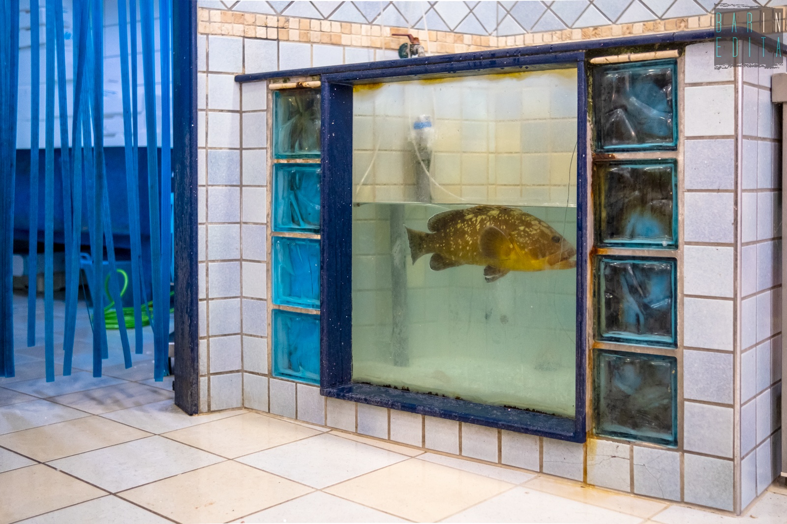 A raccontarci di questo strano legame è il 63enne Natale Caricola, detto Lino, che da due anni e mezzo cura come un animale domestico l’adorata Elena. Lo incontriamo nella sua pescheria Adriatica, in via Fanelli, lì dove alla cernia è stata riservata una vasca tutta sua: ampia e con i vetri azzurri (foto di Rafael La Perna)