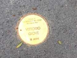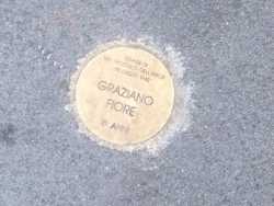 Le immagini delle pietre d'inciampo installate in via Niccolò dell'Arca a Bari, per ricordare le 20 persone morte per mano dei fascisti il 28 luglio del 1943
