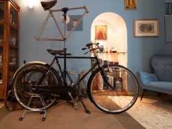 C’è la “Umberto Dei” del 1939 con i suoi particolari freni a bacchetta, la lussuosa “Bianchi S bis” del ‘26 con la rarissima gemma catarifrangente a melograno in vetro, ma anche la “Taurus 19” del 1951 che spicca per i pedali a sei gommini ricurvi. Sono alcune delle antiche biciclette del 51enne barese Michele Paparella, che da due anni acquista, restaura e colleziona vecchie “due ruote”. Siamo quindi andati a trovarlo nel suo laboratorio di via Crisanzio, sede in cui svolge il mestiere di orafo e dove tiene esposti tre dei suoi pezzi da collezione (foto di Valentina Rosati)