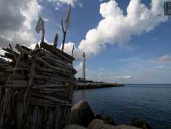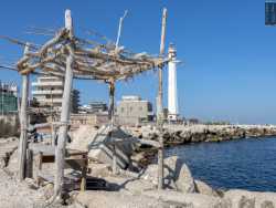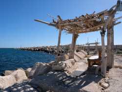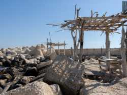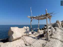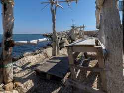 Sul litorale del rione San Cataldo di Bari, tra scogli e frangiflutti, sono adagiate da qualche tempo tre curiose capannine in legno, con tanto di panchine, che vengono utilizzate dai passanti per fermarsi un attimo a godere della silenziosa vista dell’Adriatico. A realizzarle è stato il 44enne barese Maurizio, il quale, trasformando i tronchi portati a riva dalle maree, ha creato un angolo suggestivo in una zona cittadina da sempre un po’ isolata. Il piccolo villaggio è stato infatti “edificato” sul lungomare Starita, accanto al Molo San Cataldo, in un’area priva di negozi e abitazioni e frequentata perlopiù da pescatori e qualche runner (foto di Rafael La Perna)