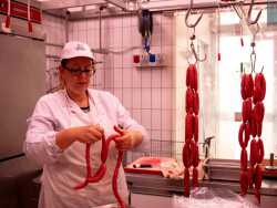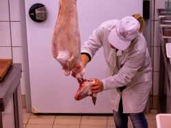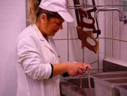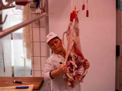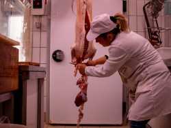 Maneggiano enormi coltelli, indossano grembiuli sporchi di sangue e scuoiano animali morti, ma hanno capelli lunghi, unghie smaltate e una voce melodiosa. Sono le sei donne che lavorano in una macelleria di Triggiano, alle porte di Bari: un'inedita eccezione "rosa" per un mestiere da sempre considerato, anche nell’immaginario collettivo, prettamente maschile. Il negozio, attivo da più di 50 anni, si trova in via Gelsi, non lontano dal particolare centro storico del paese: siamo andati a curiosare (foto di Antonio Caradonna)