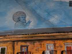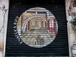 Serrande dei negozi, muri dei parchi, pareti esterne delle chiese: sono le “tele” del 70enne Angelo Guaragno, “pittore di strada” che dipinge i suoi colorati soggetti tra le vie di Bari. Soprannominato il “Van Gogh” del capoluogo pugliese, l’artista ha sinora realizzato più di 300 lavori, accomunati dal suo stile naïf: semplice e molto riconoscibile (foto di Christian Lisco)