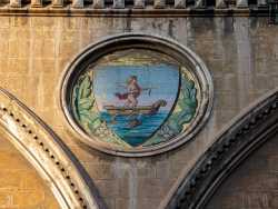 Uno scudo diviso in due parti uguali, l’una di colore bianco e l’altra di colore rosso: sono questi i colori-simbolo di Bari, impressi sullo stemma cittadino. Emblema quest’ultimo impreziosito in alto da una corona di mura merlate con cinque torri, accompagnata da un ramo di alloro a destra e uno di quercia a sinistra entrambi annodati in basso con un nastro. Un blasone che ritroviamo in tutti i luoghi istituzionali del capoluogo pugliese, come il Comune o il Teatro Piccinni e le cui tonalità identificano anche la squadra di calcio locale. Ma quali sono le origini dello stemma barese? Secondo lo storico Antonio Beatillo pare che tutto risalga alla dominazione saracena avvenuta nel IX secolo, tra l’847 e l’872