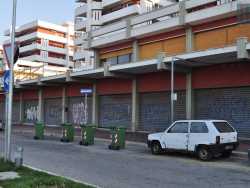 Di fronte alla spiaggia di Pane e Pomodoro, stretta fra parco Perotti, i binari della ferrovia e il giardino Veterani dello sport, si trova un’area che appare oggi come una zona “fantasma”. Il suo tratto distintivo? Una lunga serie di saracinesche abbassate, ricordo di ristoranti, bar, asili che un tempo avevano preso piede qui