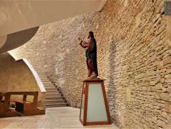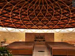 Un’astronave tra le campagne di Loseto. E’ questa la prima impressione che assale chi si trova di fronte alla struttura che spunta da un piazzale recintato su via Raffaele Perrone, a ridosso della zona nuova del quartiere a sud est di Bari. Si tratta di una specie di cono a base molto larga, coperto da rettangoli scuri. Cosa rappresenta? Nessuno lo immaginerebbe mai: è la cupola della chiesa del Salvatore, edificio sotterraneo inaugurato nel 2000 e progettato dall’architetto Ottavio di Blasi, un tempo collaboratore di Renzo Piano (Foto di Eva Signorile)