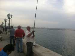 Alcune foto che ritraggono all'opera alcuni dei pescatori che da anni praticano la loro passione sul Lungomare Nazario Sauro di Bari