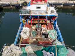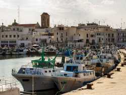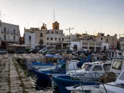 Mola di Bari è una cittadina costiera che, seppur mai sviluppatasi appieno, è rimasta tra le poche nel barese a mantenere uno stretto contatto con l’Adriatico. Il suo cuore pulsante continua infatti ad essere proprio il porto, dal quale ogni notte decine di pescherecci partono per avventurarsi in mare con la speranza di riempire le loro reti. Pesce che poi sbarcano e vendono all’interno dello storico mercato ittico, attivo sin dal 1948 sul lungomare. E non solo. A Mola è ancora presente un ottocentesco cantiere navale e, a marcare ancora di più il legame con l’acqua salata, viene anche organizzata dal 1964 una frequentatissima festa culinaria: la Sagra del Polpo. E così, girando tra banchine, maestri d’ascia e pescivendoli, siamo andati alla scoperta della “Mola di mare e sul mare”. (Foto di Antonio Caradonna)