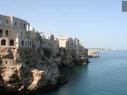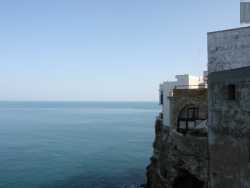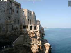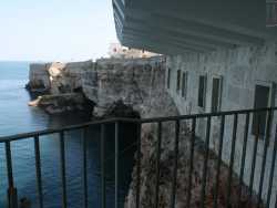 Sorgono su una scogliera alta oltre 20 metri a strapiombo sul mare, incastonate nella roccia e hanno di fronte solo ed esclusivamente la grande distesa blu dell’Adriatico. Sono le case del centro storico di Polignano, i cui balconi in pietra o in ferro battutto si affacciano direttamente sul mare aperto. Non esattamente l’abitazione ideale per chi soffre di vertigini, ma il massimo per chi sogna di svegliarsi la mattina ritrovandosi davanti “all’infinito” (Foto di Ilaria Palumbo)