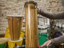 Rocco, il falegname che realizza gli strumenti a percussione a mano