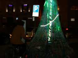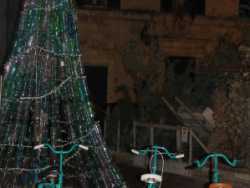 Ruvo di Puglia: costruito con materiale riciclato dalle bottiglie di plastica, l’albero di Natale viene illuminato a pedalate mediante l’utilizzo di 3 biciclette installate alla base.