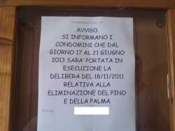 Il pino conteso. L'amministratore decide l'abbattimento del pino