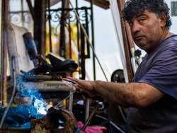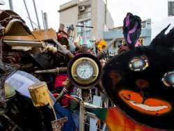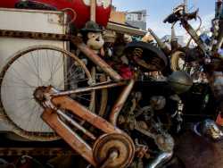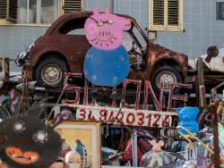 Un luogo magico e colorato, dove vecchi oggetti abbandonati diventano “opere d’arte” grazie all’inventiva di un 57enne barese. Parliamo del laboratorio/galleria che si trova in via Massaua, una delle strette stradine del quartiere San Cataldo: è qui che il “rigattiere” Simone Ciliberti espone i suoi manufatti, realizzati mettendo insieme cose trovati qua e là (foto di Valentina Rosati)