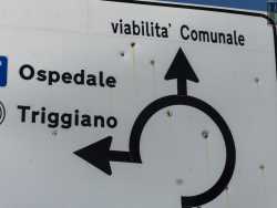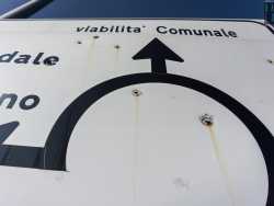 Uncartello stradale a fondo bianco forato da dodici colpi di arma da fuoco. È ciò che si osserva se si percorre viale Pietro Mennea, circonvallazione di Triggiano che collega la provinciale 60 alla statale 100. «Si tratta di un avviso da parte dei gruppi malavitosi. È un modo per loro di “marcare il territorio”: un’azione con cui “comunicano” di aver cominciato a controllare una determinata zona e di detenere lì armi da fuoco (foto di Francesco Savino)