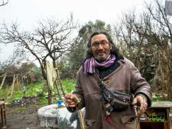 Ci sono zero gradi e nevica. Ma lui è abituato a vivere così, sempre all’aria aperta, appoggiandosi a una vecchia casa abbandonata, senza luce elettrica, acqua potabile e riscaldamento. Non è una storia d’altri tempi, accade ai giorni nostri e sotto gli occhi di tutto il paese. Parliamo del 51enne Piero, che vive da otto anni nella campagne che circondano via Marina Vecchia a Triggiano. (Foto di Katia Moro)