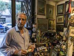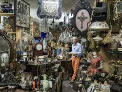 Sull’insegna del suo negozio-nostalgia è impressa la frase “Oltre il tempo”, che preannuncia ai passanti e ai curiosi un piccolo tesoro disordinato, in cui scovare cimeli appartenuti a chissà chi. Da antichi ed eleganti candelieri del 700 a introvabili giocattoli in legno, da armi rare a vecchi giornali, sono innumerevoli si piccoli gioielli che è possibile scovare spulciando nella bottega del 75enne Dario Calò, situata a Bari, in via De Rossi (foto di Gennaro Gargiulo)