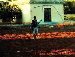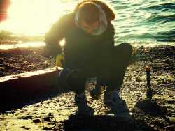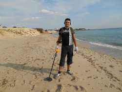 Giovanni Latorre durante le sue ricerche con il metaldetector