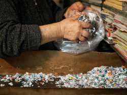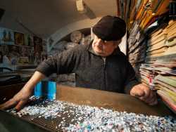 Un luogo dove per tutto l’anno è possibile respirare l’aria magica del Carnevale. Stiamo parlando del laboratorio del 72enne Vincenzo Lombardi, l’ultimo “coriandolaio” di Putignano: un uomo che continua a produrre artigianalmente quei piccolissimi ritagli di carta che rendono ancora più “colorata” e gioiosa la famosa festa di febbraio (foto di Valentina Rosati)