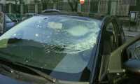 Profilattico riempito d'acqua spacca il vetro di un'auto