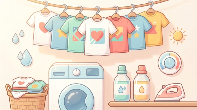 Bastano alcune accortezze durante il lavaggio, l'asciugatura e la conservazione per prolungare significativamente la vita della grafica impressa sul tessuto.