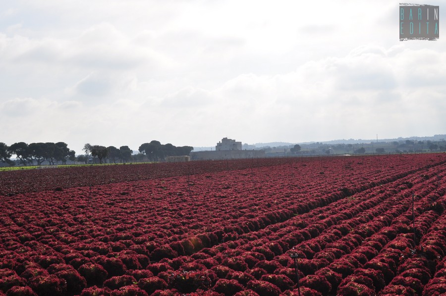 Ciò che si può vedere è prima di tutto un enorme campo di lattuga verdissima, coltivata su un appezzamento un po’ sopraelevato rispetto alla strada grazie a una sorta di muretto a secco. Più avanti, verso sud, il verde lascia il posto all’intenso carminio della lollo rossa, per poi ritornare preponderante nei pressi della masseria che si staglia sullo sfondo.Notizia di proprietà della testata giornalistica © Barinedita (vietata la riproduzione)