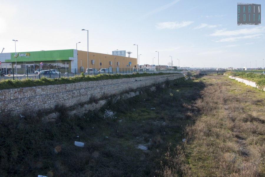 Da qui abbiamo una visuale completa dell’antico letto ricoperto da arbusti selvatici: il pendio appare meno dolce in questo punto, delimitato com’è dagli alti argini in pietra, sulla cui sinistra insistono i supermercati per la grande spesa.Notizia di proprietà della testata giornalistica © Barinedita (vietata la riproduzione)