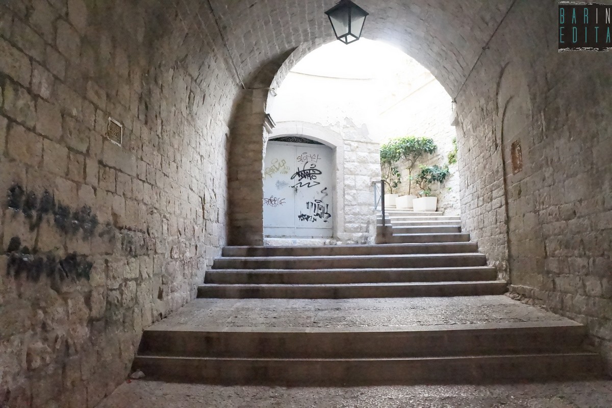 Il santuario si “nasconde” tra i vicoli del centro storico della cittadina, nel cuore del suo sottovalutato quartiere ebraico. Per scoprirlo attraversiamo quella che un tempo era la giudecca tranese, un’area che dal 1156 riunisce le famiglie ebraiche pugliesi ma che versa essa stessa in uno stato di semi-abbandono tra locali chiusi, vicoli sporchi e pareti imbrattate.