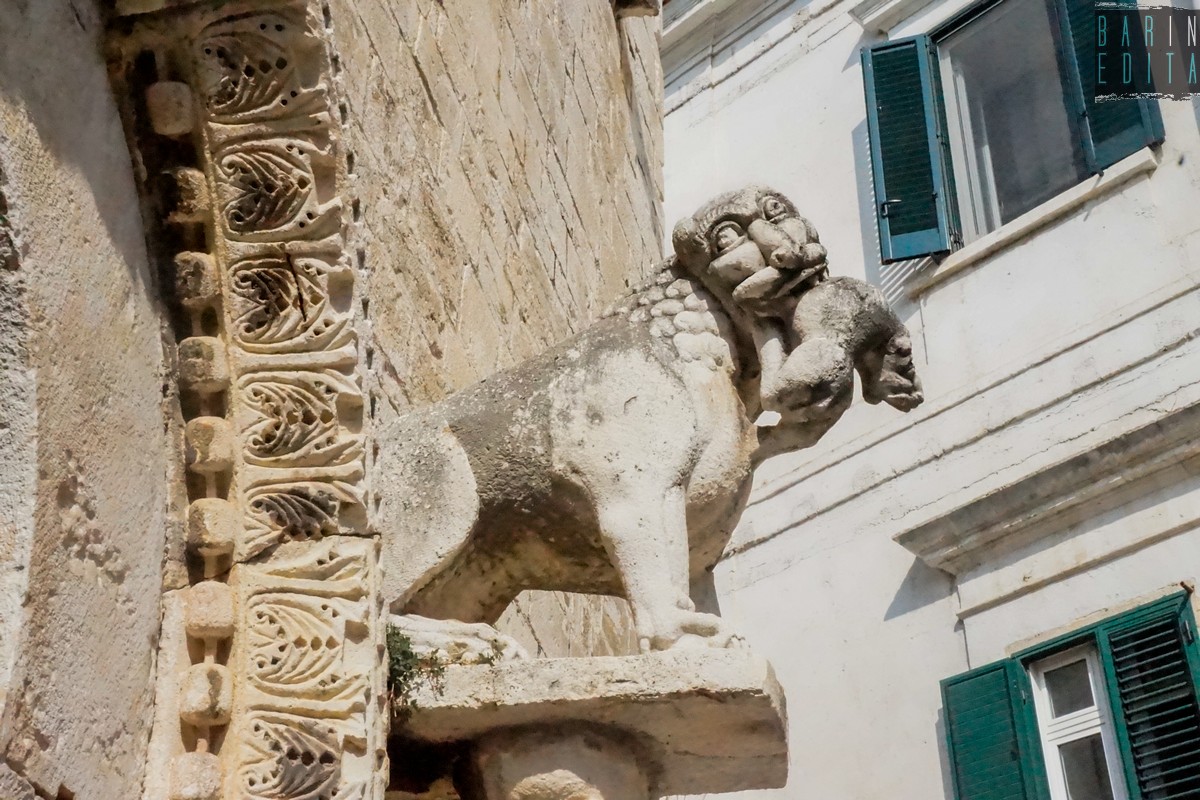 Di particolare interesse è il portale finemente ornato con ai lati due elefanti stilofori privi di proboscide, sui cui capitelli poggiano un grifo alato e una leonessa con il cucciolo morto tra le fauci. Il portone verde è racchiuso in un’elegante doppia cornice a grani e motivi vegetali.Notizia di proprietà della testata giornalistica © Barinedita (vietata la riproduzione)