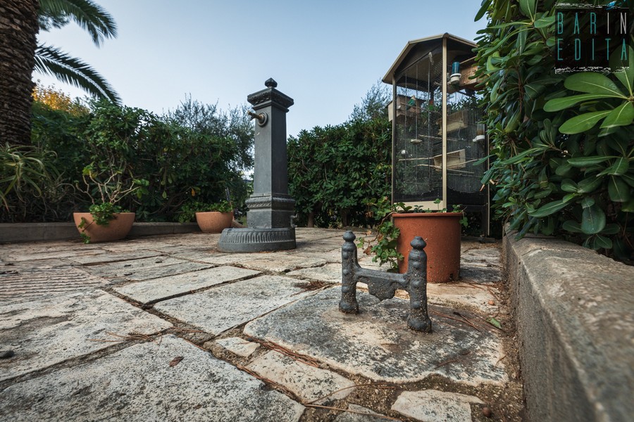 «È la dèpandance – spiega Lorusso –, realizzata anche questa nel 1896 per trovare una sistemazione alla famiglia del contadino che avrebbe lavorato per noi: il signor Sforza. Lui e la moglie avevano undici figli, perciò in questa struttura vissero ben tredici persone. Si occupavano della manutenzione del giardino, dei terreni e della stalla che un tempo ospitava alcuni cavalli. Oggi degli Sforza è rimasta ad abitare qui solo Anna, pittrice barese che ha trasformato il giardinetto adiacente alla dipendenza in un vero e proprio gioiello di arte e botanica».
