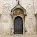 Se la cornice del timpano è adorna di teste leonine e di pomi traforati intervallati da fogliame di acanto, l’archivolto è un capolavoro straordinariamente rifinito. Decorato nell’intradosso da lacunari con rosette, accoglie cammelli cavalacati da scimmie, uomini nudi, grappoli d’uva, mostri marini, cavalieri, colombe e leoni con facce umane. Elementi che fungono da personificazione di vizi e virtù.