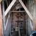 Torniamo sui nostri passi e, percorrendo un corridoio, raggiungiamo una delle zone crollate del palazzo. L’intero blocco, privo di pavimenti sui diversi livelli, è sostenuto da lunghi piloni ed è chiuso in alto da una copertura in metallo. Resta visibile la muratura in pietra e i sottostanti archi del piano inferiore. Da qui ci spostiamo in una piccola corte interna con una scala malridotta, vani murati e secolari archetti sovrapposti.Notizia di proprietà della testata giornalistica © Barinedita (vietata la riproduzione)