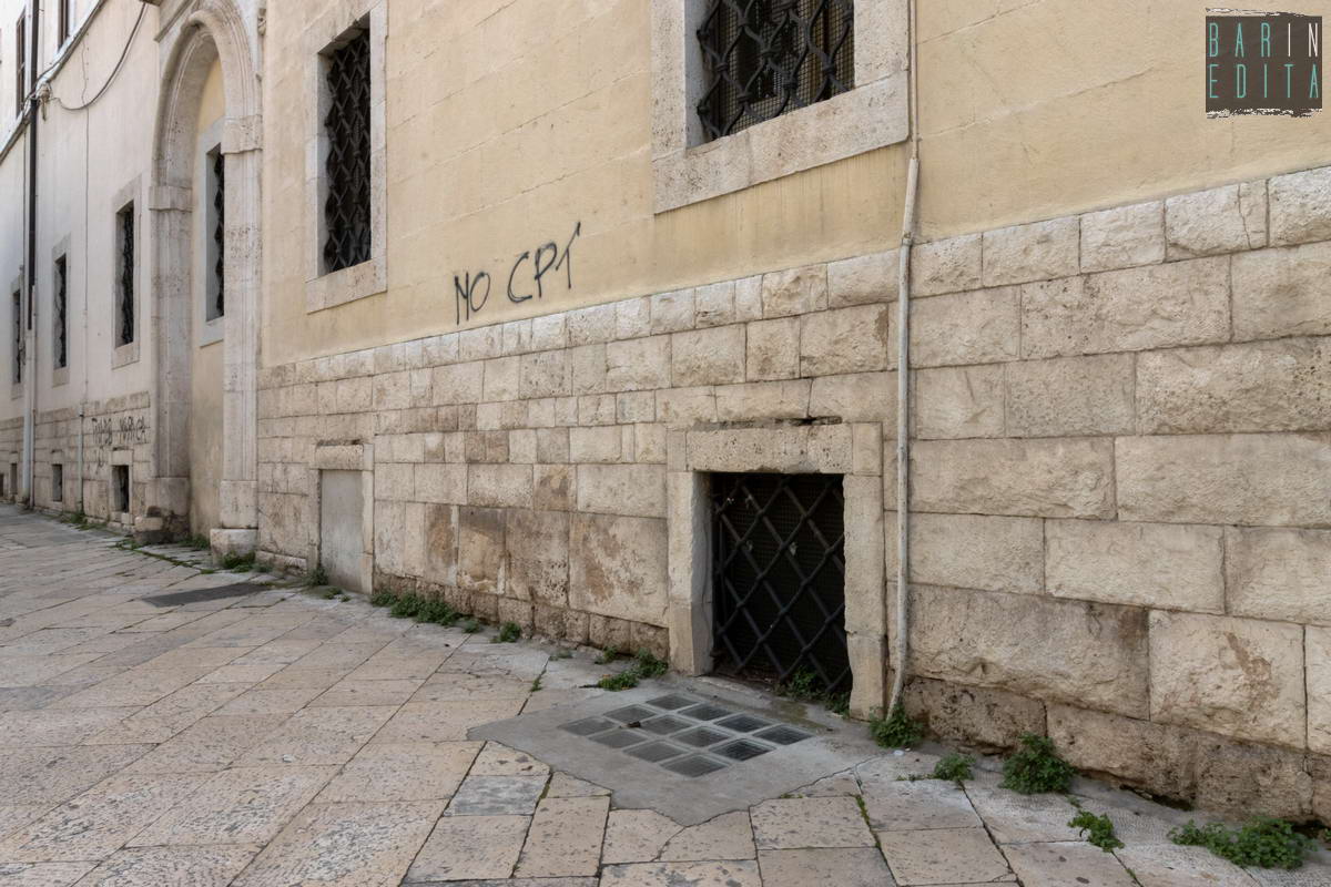 Circumnavighiamo ora l’edificio per raggiungere la parte posteriore in via Villari, stradina aperta nell’800 che tagliò parte dell’originario convento. Da questo lato la struttura è a due piani e nasconde, dietro un cancello nero, il cortile interno. Mentre alzando lo sguardo è possibile scorgere l’ampio timpano che sovrasta l’immobile, decorato con un piccolo rosone a 12 raggi: unico riferimento al passato religioso del complesso.Notizia di proprietà della testata giornalistica © Barinedita (vietata la riproduzione)