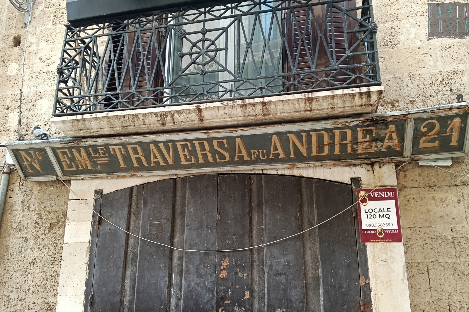 Il nostro punto di partenza è Bari Vecchia. Da piazza del Ferrarese giriamo a sinistra su strada Vallisa per incontrare dopo pochi passi un’antica insegna posta in cima a un portone serrato: l’unica in legno in tutta Bari. È quella del negozio di oggettistica casalinga Traversa: fondato nel 1856 è stato l’ultimo a Bari a vendere cestini di vimini artigianali. L’attività ha chiuso i battenti nel 2019 a causa della morte dei proprietari e il locale risulta attualmente in vendita.Notizia di proprietà della testata giornalistica © Barinedita (vietata la riproduzione)