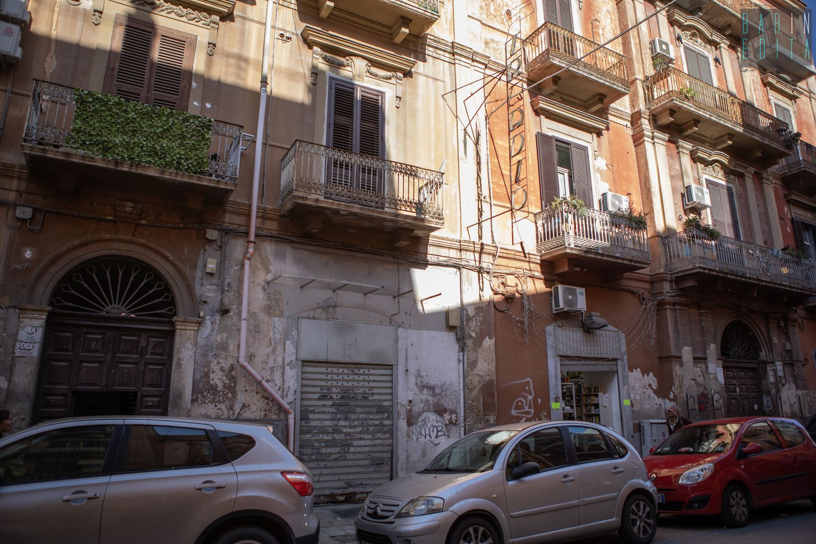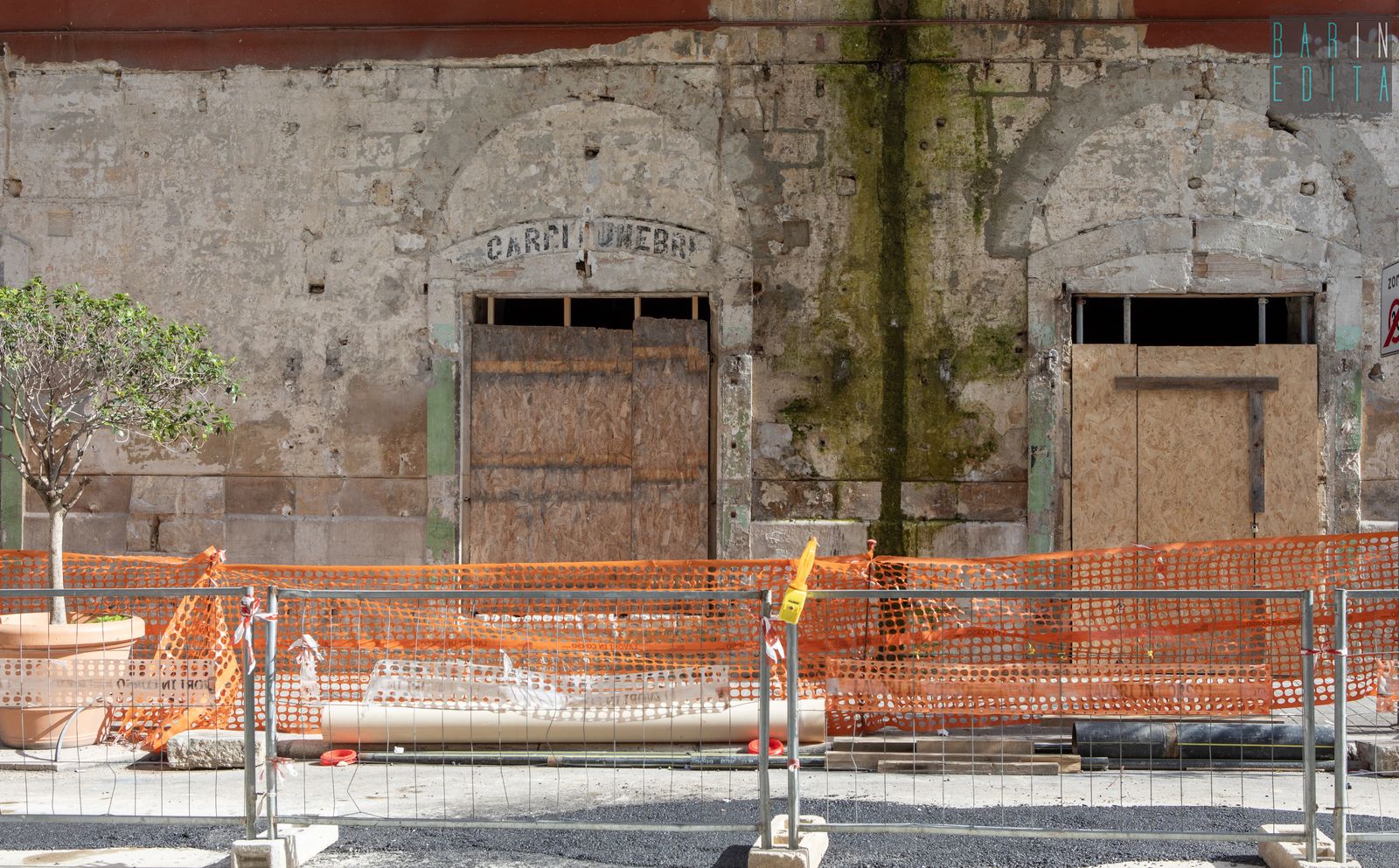 Restiamo nel quartiere Libertà e ci spostiamo in via Manzoni ad angolo con via Principe Amedeo, lì dove è in fase di restauro il palazzo che accoglieva lo storico negozio di abbigliamento Marianna Confezioni. Anche in questo caso durante i lavori è emersa sulla parete una scritta antica: "Carri Funebri".