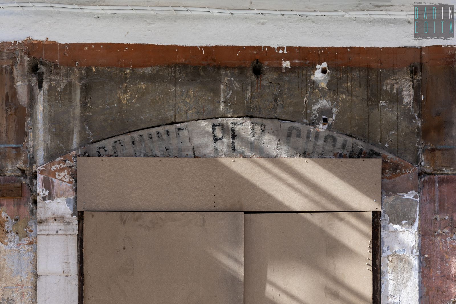 L’insegna è disposta su un vecchio portone in legno marrone sul quale sono stati attaccati negli anni numerosi volantini pubblicitari. È evidente lo stato di abbandono del posto che è stato attivo dal 1980 al 1990.Notizia di proprietà della testata giornalistica © Barinedita (vietata la riproduzione)