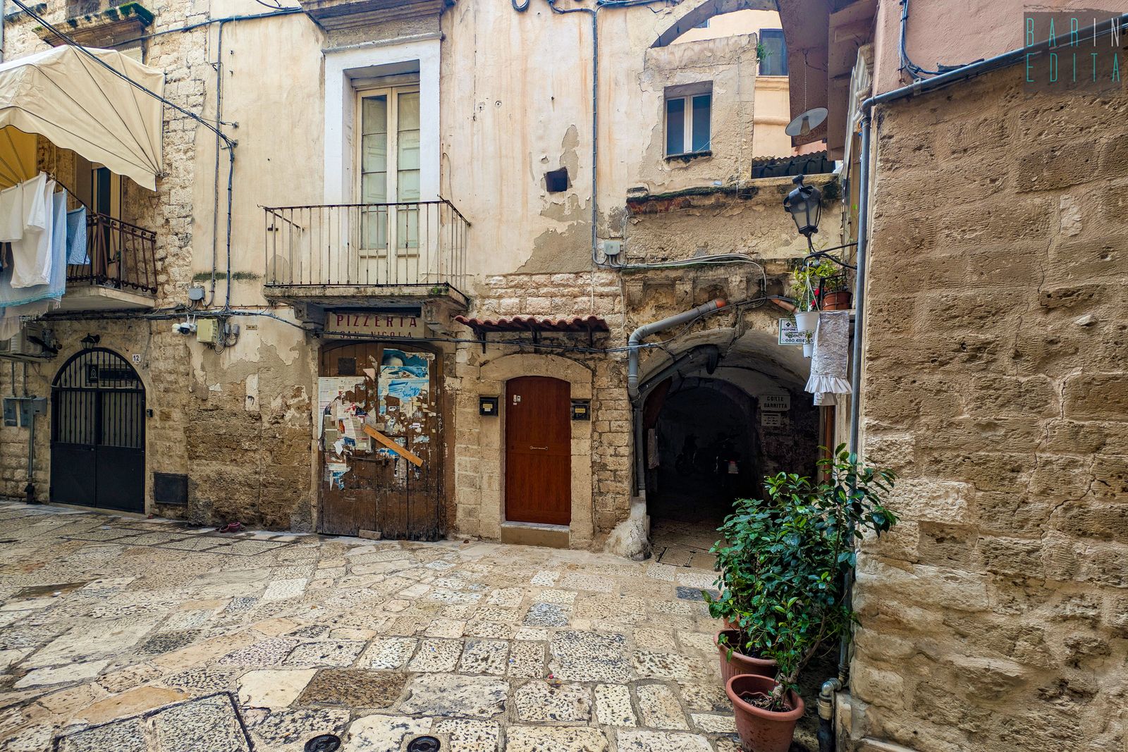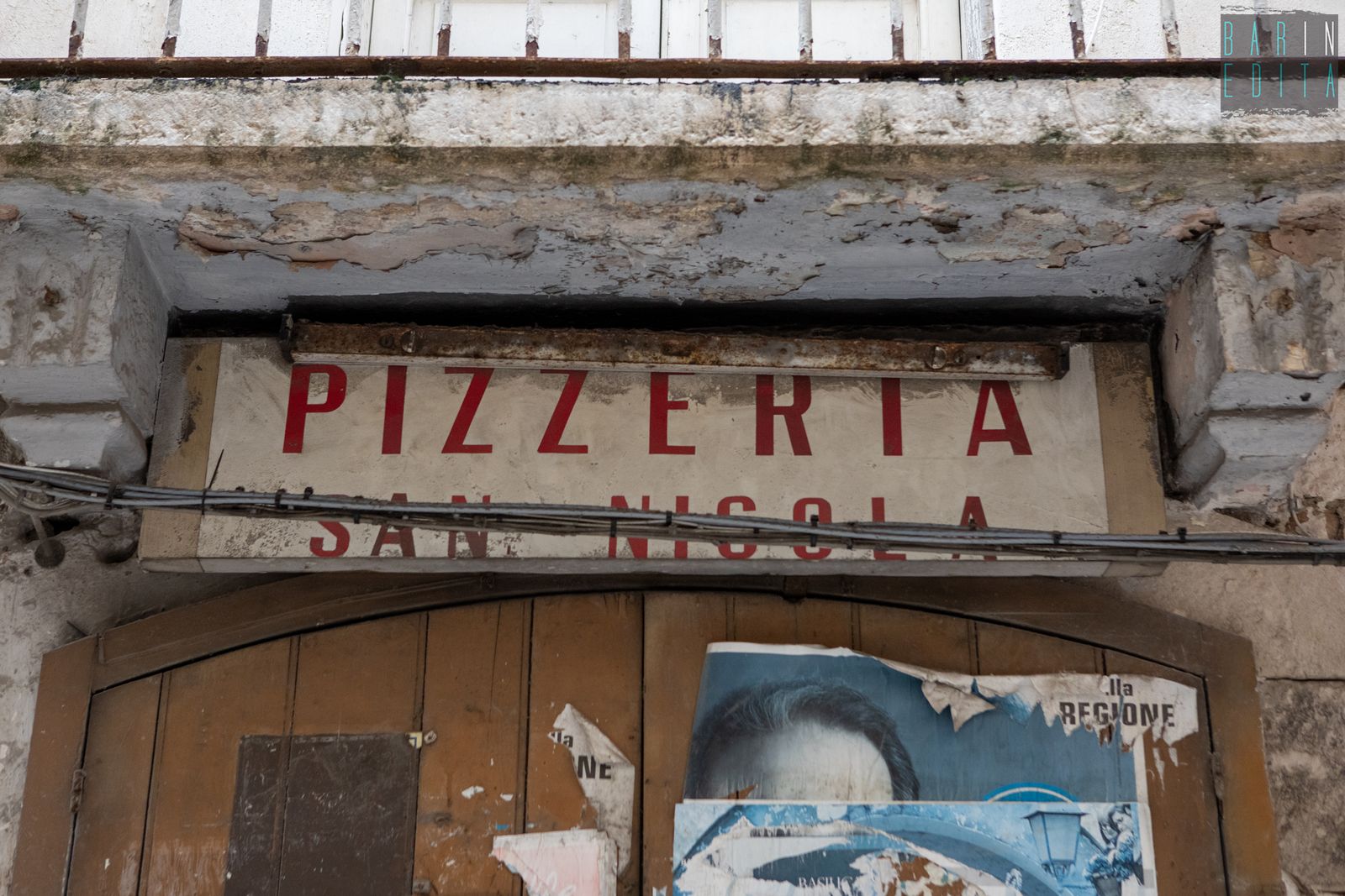 Restiamo nel centro storico per dirigerci verso la Basilica di San Nicola. Imbocchiamo la strada denominata piazza 62 Marinai e, accanto a Corte Garritta, ci ritroviamo davanti alla scritta rossa della pizzeria San Nicola.