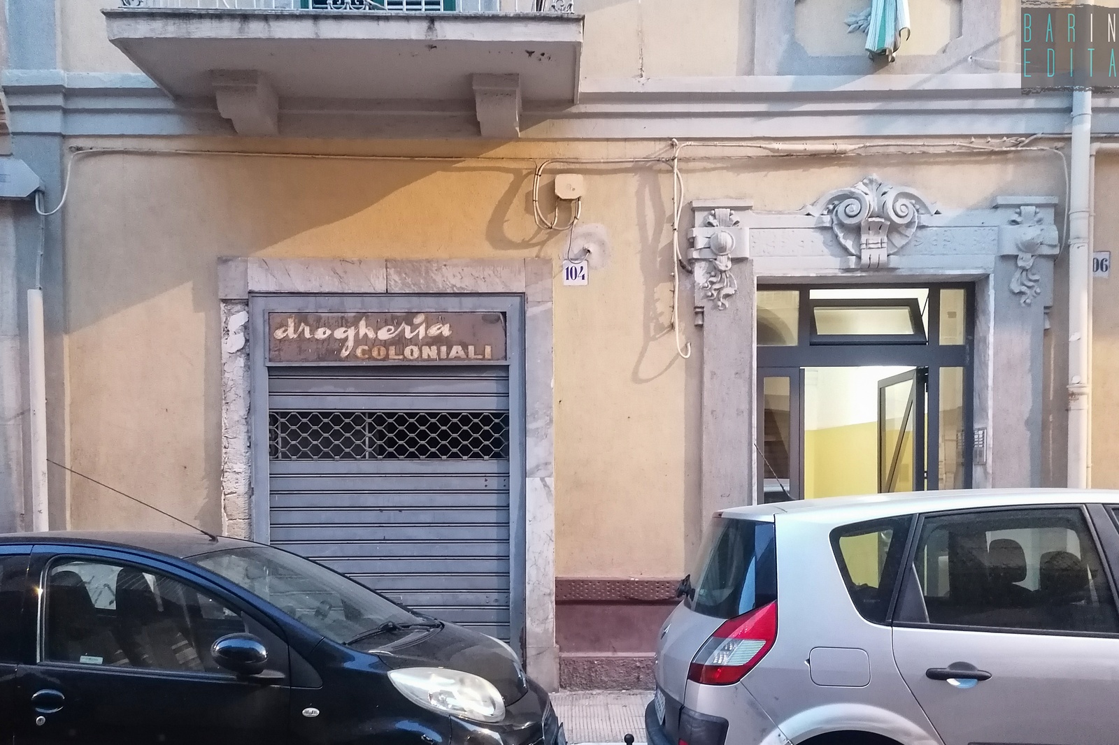 L’ultima tappa del nostro viaggio è nel vicino quartiere Carrassi, dove in via Isonzo, quasi ad angolo con via Baracca, si staglia l’insegna dai tratti gialli della Drogheria Coloniale.