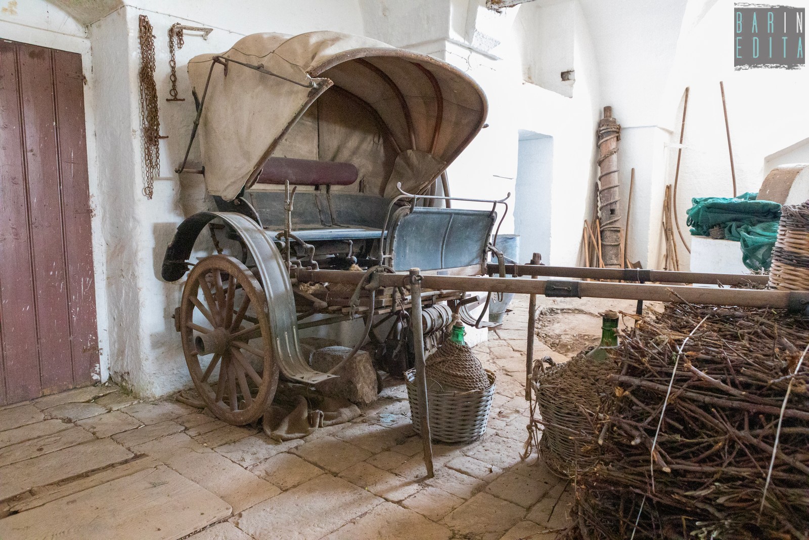 Risaliamo sul lato opposto della vallata dove incrociamo le ultime grotte del villaggio rupestre. I proprietari ci conducono infine all’interno della masseria che ospita un vero museo della civiltà contadina, allestito in un vasto locale con volte a stella e pavimento in chianche. Nell’ambiente vi sono due grandi frantoi, attivi fino agli anni Settanta, con massicce macine in pietra, bilance, presse e strumenti agricoli di ogni genere. Tra le varie attrezzature trovano spazio anche un calesse in legno e auto d’epoca.Notizia di proprietà della testata giornalistica © Barinedita (vietata la riproduzione)