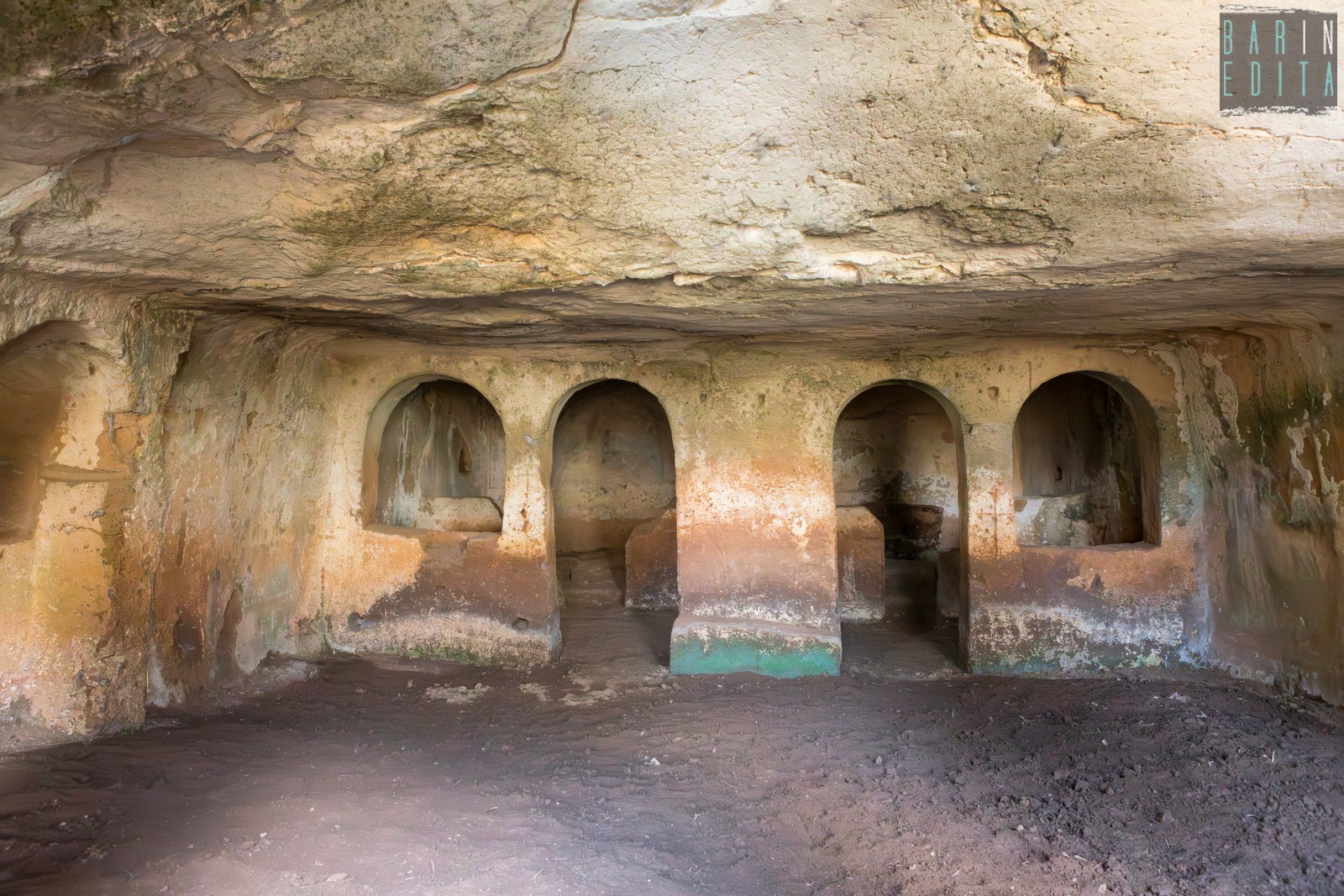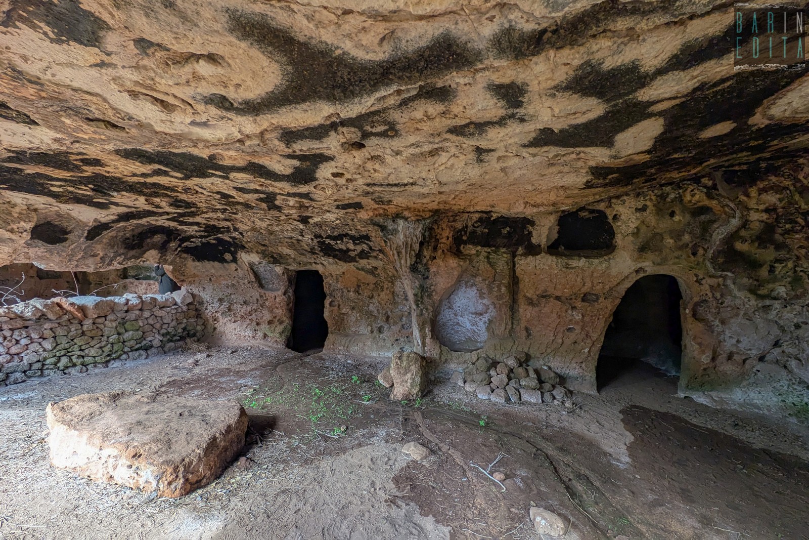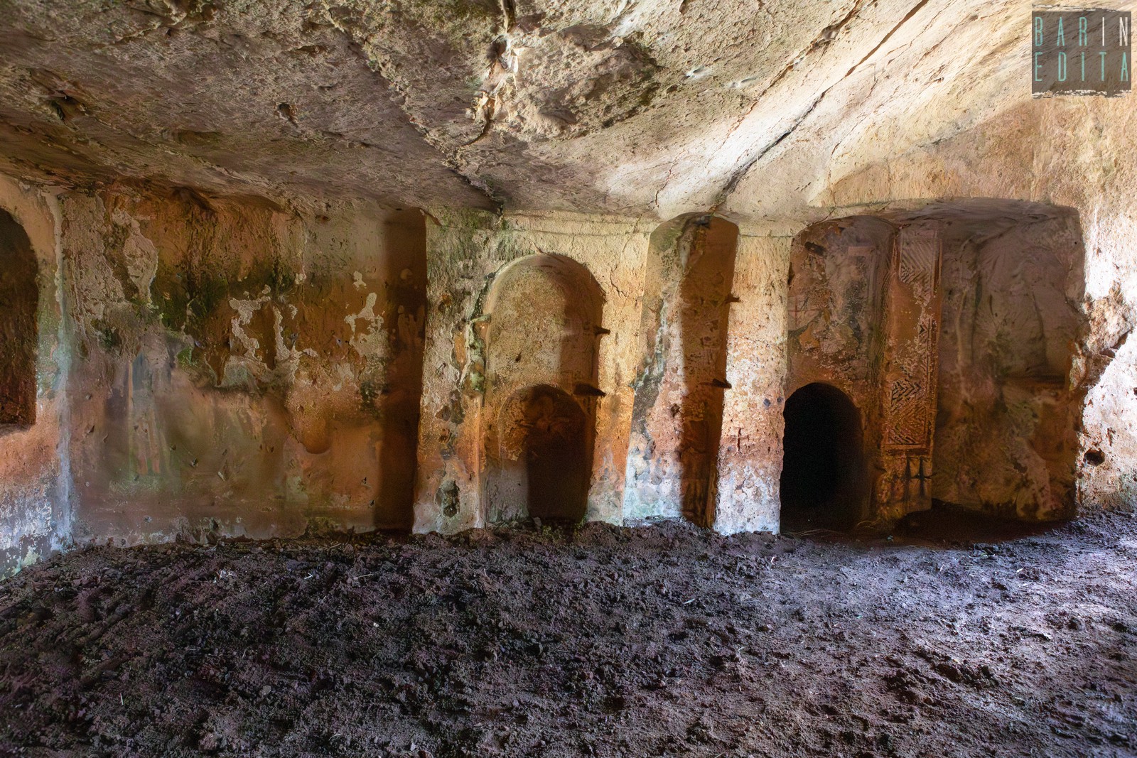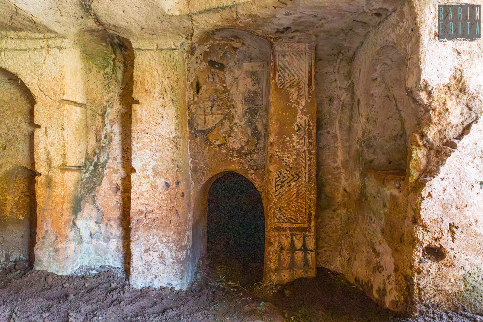 Accediamo all’interno che si compone di un’unica aula quadrata di circa 50 metri quadri, con soffitto piano e pareti articolate da sporgenze e nicchie. Sulla destra notiamo anche uno stretto cunicolo che conduce a un piccolo vano usato anticamente come camera sepolcrale.Notizia di proprietà della testata giornalistica © Barinedita (vietata la riproduzione)
