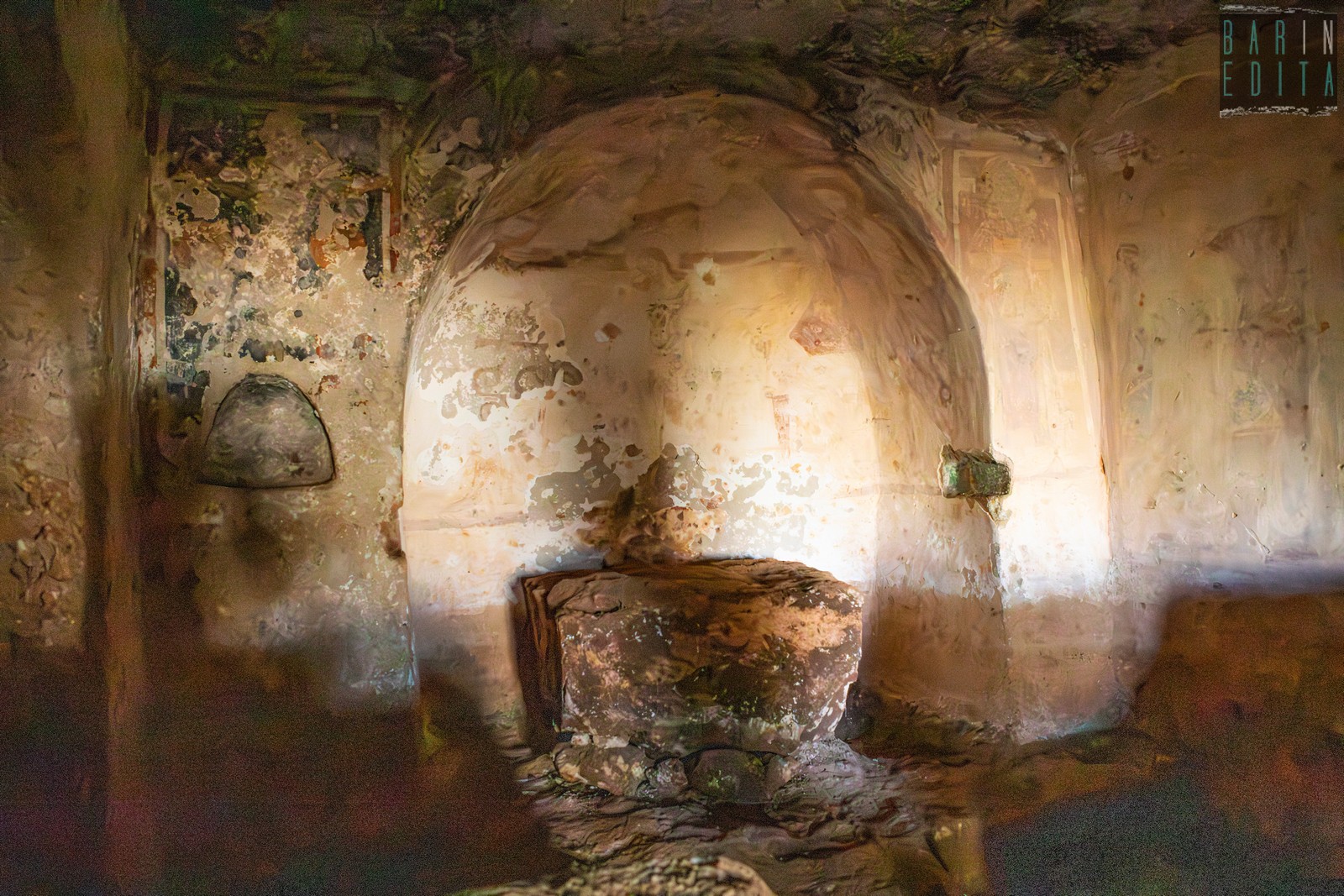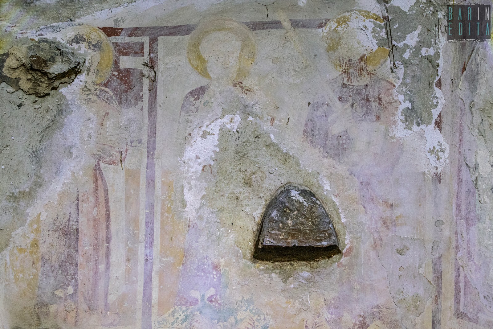 Avvicinandoci ai muri notiamo croci e iscrizioni religiose e, pur coperti dalla polvere del tempo, scorgiamo anche i brillanti colori di antichi affreschi realizzati in più fasi tra il XII e il XVII secolo, a testimonianza della continuità di culto nel luogo. Decori che un tempo dovevano ricoprire l’intero ambiente che oggi si presenta in buona parte spoglio.Notizia di proprietà della testata giornalistica © Barinedita (vietata la riproduzione)