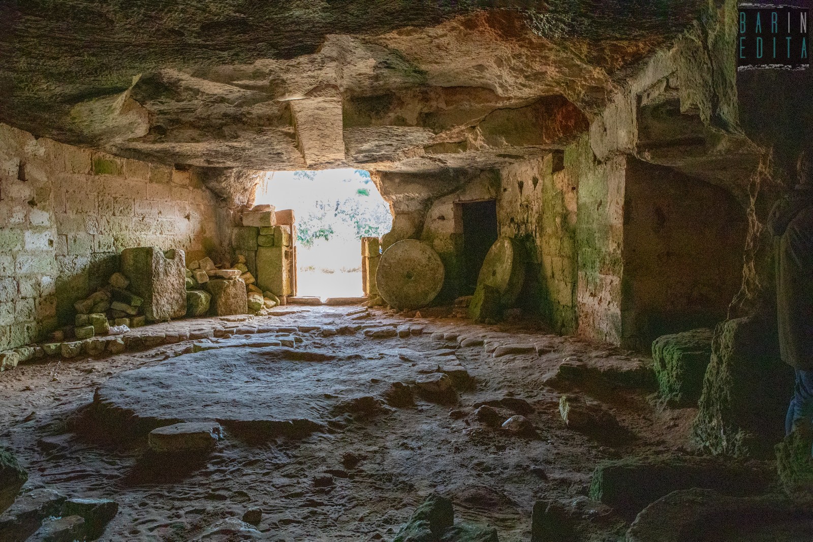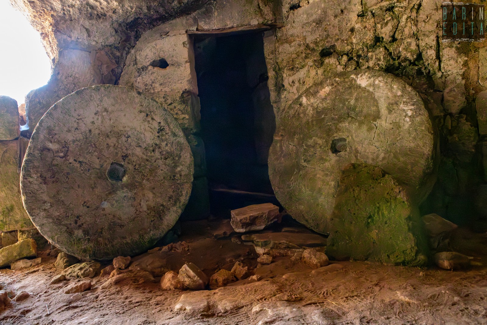 Le grotte più grandi erano adibite a palmenti per la pigiatura dell’uva, frantoi per la produzione di olio (con tanto di vasche per la decantazione) o molini per la lavorazione del grano. In alcuni locali sono ancora presenti le massicce le macine in pietra utilizzate durante le attività agricole.