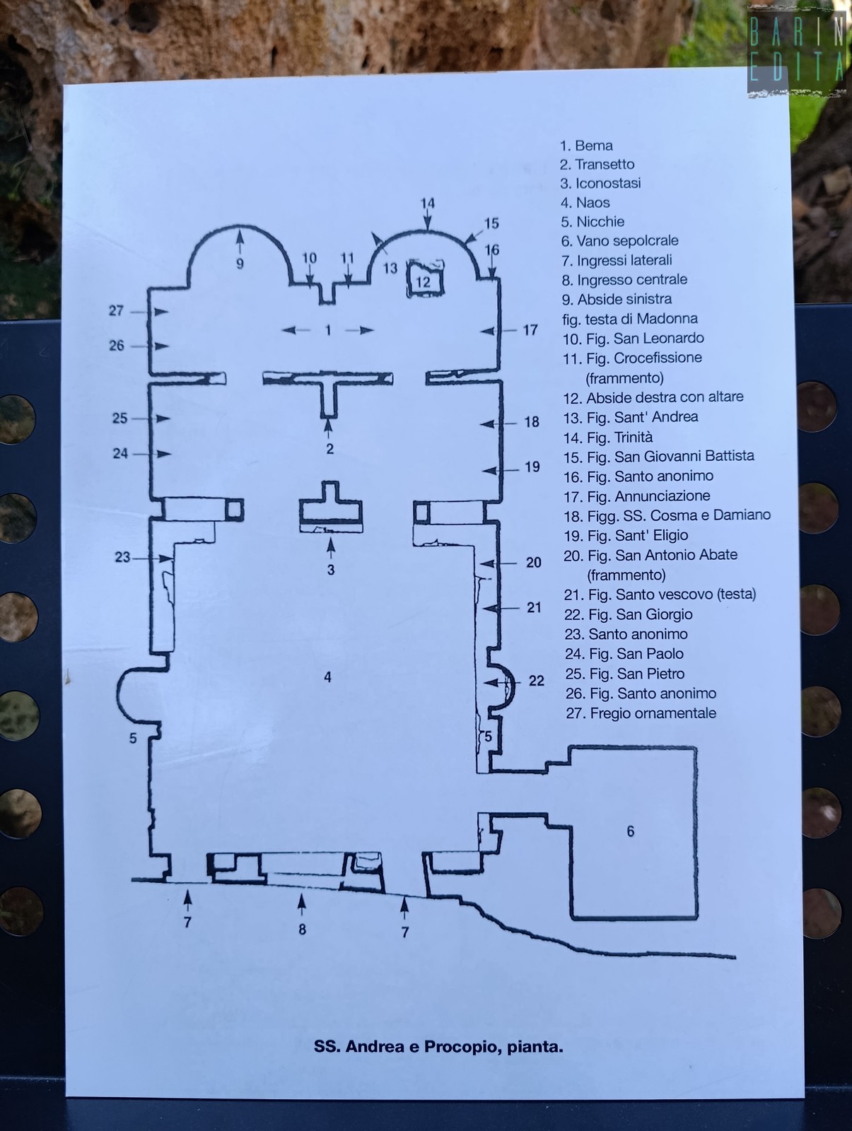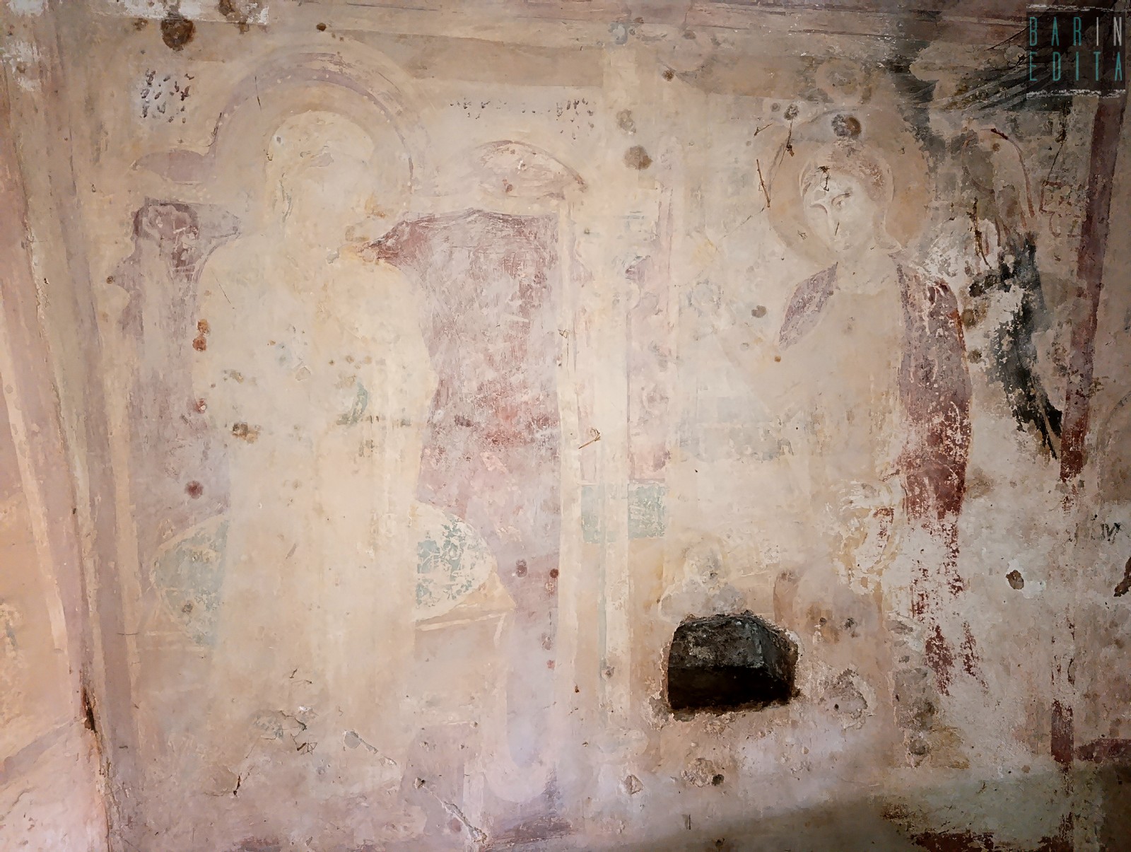 Nel naos (area antistante riservata ai fedeli) resta visibile un san Giorgio a cavallo e frammenti di figure di altri santi. Una iconostasi a doppio fornice con finestrelle delimita la parte del bema (spazio rialzato per il rito), diviso in quattro celle da arcatelle e muretti, dove invece le decorazioni si sono conservate quasi integralmente.Notizia di proprietà della testata giornalistica © Barinedita (vietata la riproduzione)