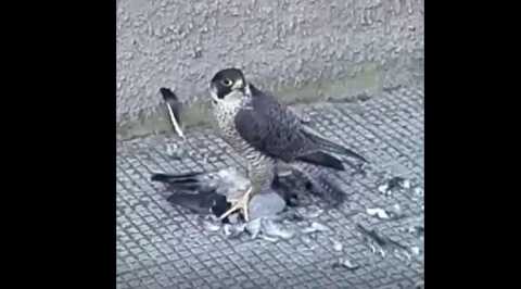 Bari, falco pellegrino atterra in via Giulio Petroni e si divora un colombo: il video