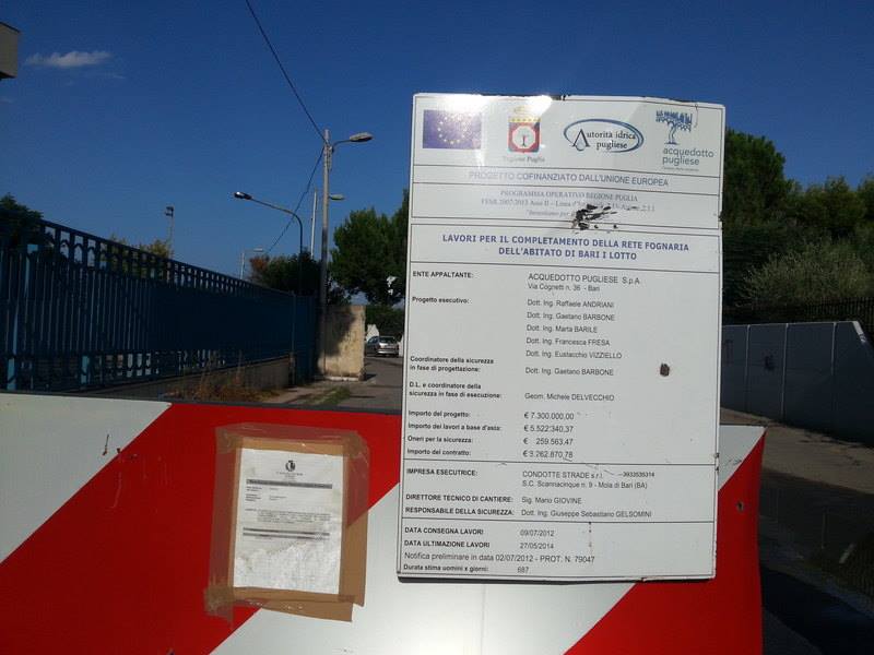 Solo lo scorso luglio sono partiti finalmente i lavori dell'ente Acquedotto pugliese. La consegna del nuovo impianto fognario è prevista a maggio 2015. Per ora via Vassallo è interrotta al traffico (vedi galleria fotografica).